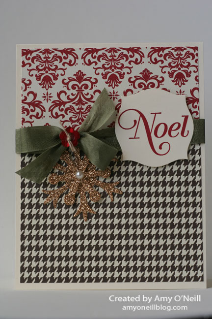 I’ve been playing around with the Festival of Prints Designer Series Paper Stack today.  There are some really pretty papers in there.  Here’s a card where I really let the focus be on the paper rather than the stamping.  However, I do think this stamped sentiment is gorgeous.  I love the fonts used in this stamp set.  I added a snowflake made with the champagne glitter paper for a little sparkle.  Overall, it’s a simple card.
