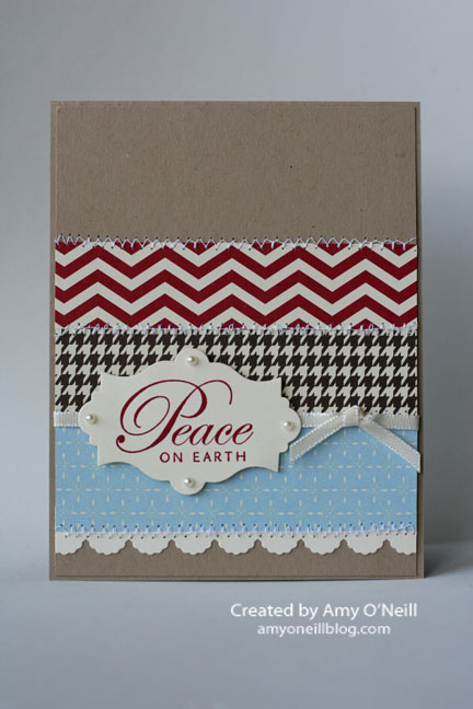 Here’s another Christmas card I made with the Festival of Prints Designer Series Paper stack. I pulled out my sewing machine and used it on this card. Don’t look closely — my zig-zag stitch wasn’t working right and I couldn’t figure out what was wrong with it. It was probably malfunctioning from lack of use. 🙂