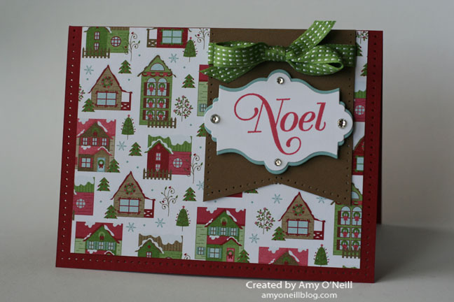 The little homes on this Christmas paper from the Snow Festival Designer Series Paper are so cute. I wanted them to be the star of the show on this card, so I just added a banner for the sentiment and added some paper piercing to dress things up a bit. This was a super easy card with very little actual stamping.