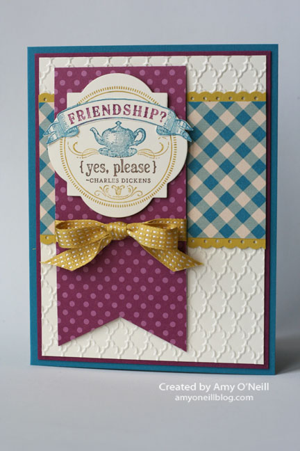 2. Amy, I love the colors and all the interest you captured on each layer with the embossed fan, the dots and the gingham paper. it reminds me of an afternoon tea with a great friend! fabulous card. So glad you shared it with the Paper Players.