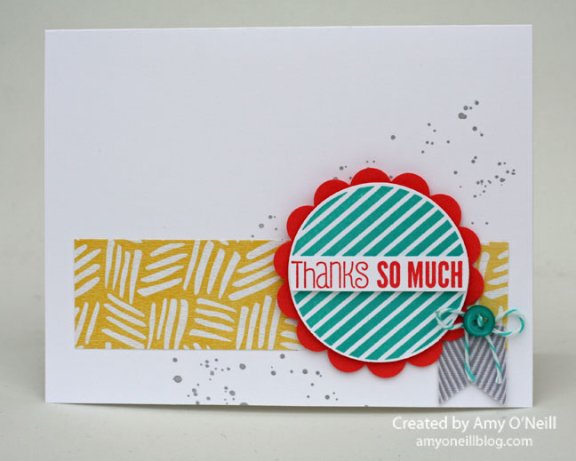Thanks from KMy thirteen year-old daughter needed a thank you card for a friend.  I pulled my #hello set off the shelf and decided to use a favorite color scheme of hers — Crushed Curry, Tangerine Tango, and Bermuda Bay.