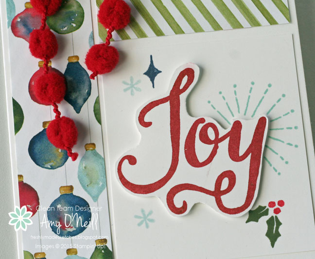 2. This is such a fun card, Amy! I love the way you cut out the ‘Joy’, the papers that you chose, and the red pompom trim is the perfect finishing touch!