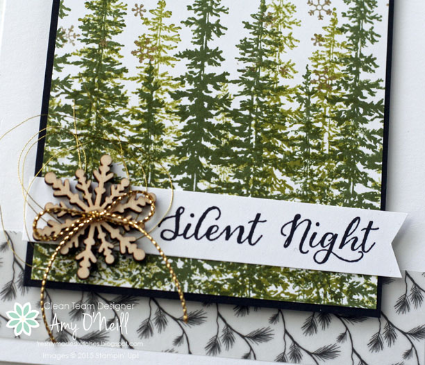 Pine WonderlandThe strip of dsp at the bottom of the card is from the Winter Wonderland Designer Vellum Stack.