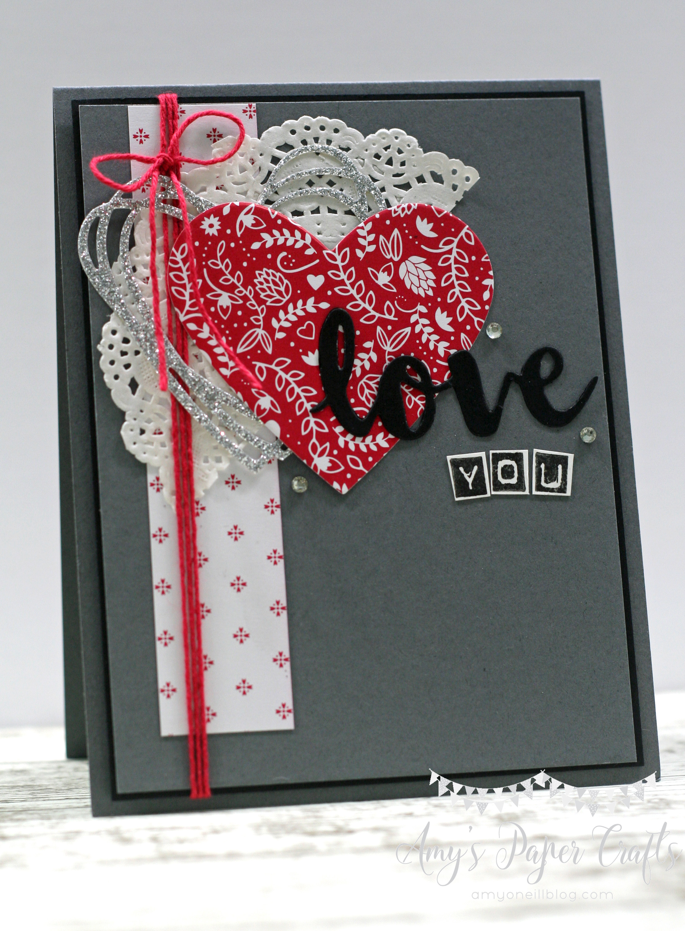 I used a Basic Gray card base. The “you” part of the sentiment was made with the Labeler Alphabet stamp set. This card came together pretty quickly. The hardest part was deciding which sheets of dsp to use.