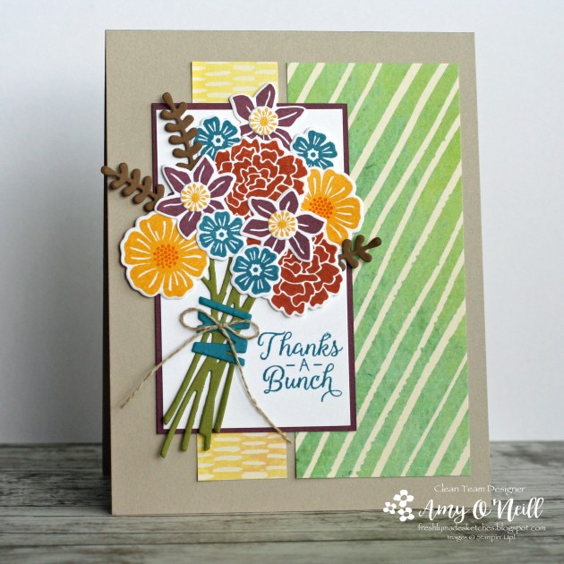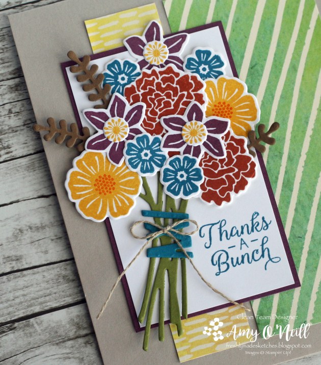 I love the Beautiful Bouquet bundle and decided to make a Fall bouquet with it.  I used a color combo of Crushed Curry, Fresh Fig, Cajun Craze, Island Indigo, and Soft Suede.