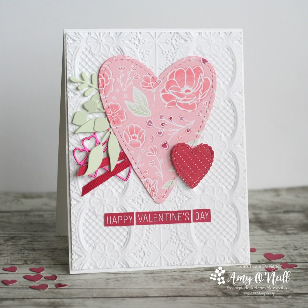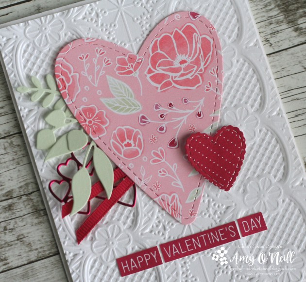 2. Love this card Amy! That big heart is so pretty and I just love the embossed background! Plus, those little red hearts peeking out are just perfect! This card screams Valentine’s Day!