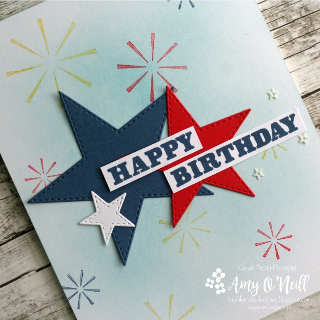 My dad’s birthday is on the 4th of July.  I always thought that was so cool!  He gets fireworks and family barbecues every year to celebrate his birthday.  Except for this year — no big gatherings during Coronavirus.  I decided to use the sketch for his birthday card, and since masculine cards are always such a challenge for me, I was thankful to get to use the 4th of July theme for his card.