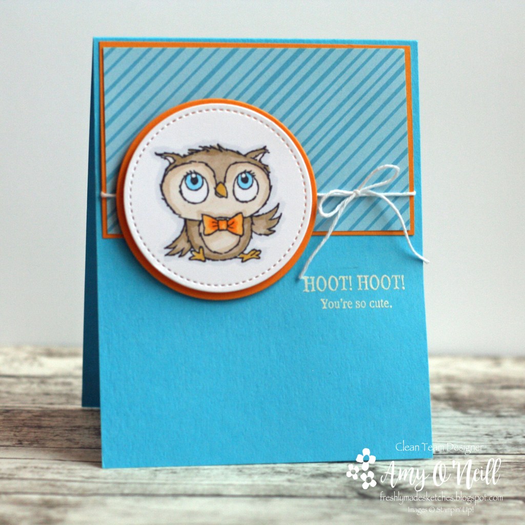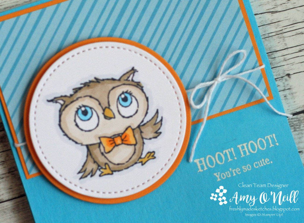 I hadn’t used the new Sale-a-Bration set, Adorable Owls yet and I thought one of the cuties would fit perfectly in the focal circle of the sketch.