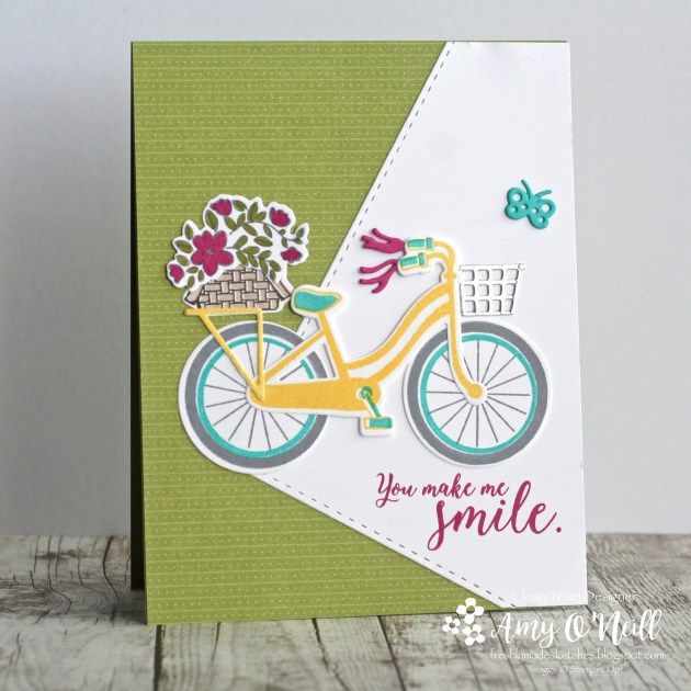 One of my favorite sets in the new catalog is the Bike Ride set, which has coordinating framelits as well. I love how you can decorate this cute bicycle with all sorts of fun accessories.