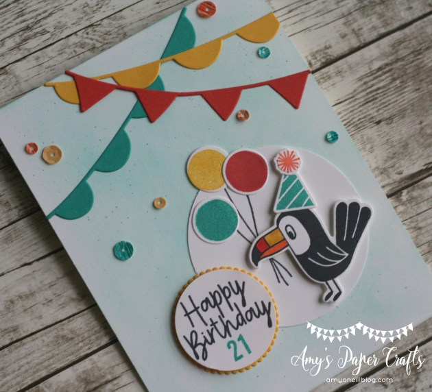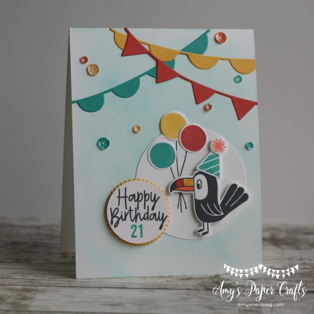 It was birthday week in our house the past couple of days — one on the 14th and one today on the 16th. And both of them are away at college, so we had to celebrate long distance. My oldest turned 21 today. Here’s the card I made to mark the occasion.