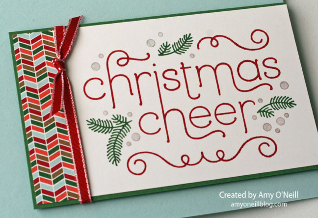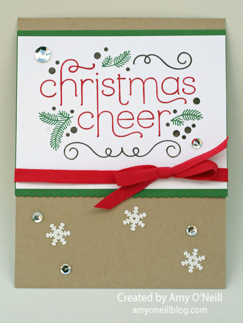 On this card, I used some of the Kraft card stock, which I love, love, love. I stamped this pretty sentiment image from Cheerful Christmas, which I colored with my Stampin’ Write markers onto Whisper White card stock.