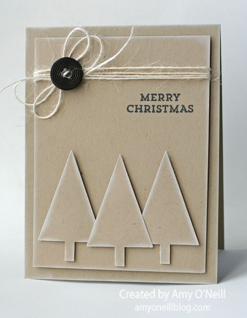 For this first card, I punched out three trees from Crumb Cake card stock with the Tree Punch and sponged the edges with some Whisper White Craft Ink. I also sponged the edges of the card layers, and stamped the sentiment from the stamp set included in the November My Paper Pumpkin kit.