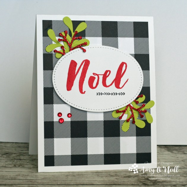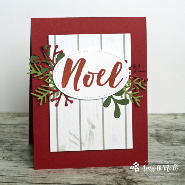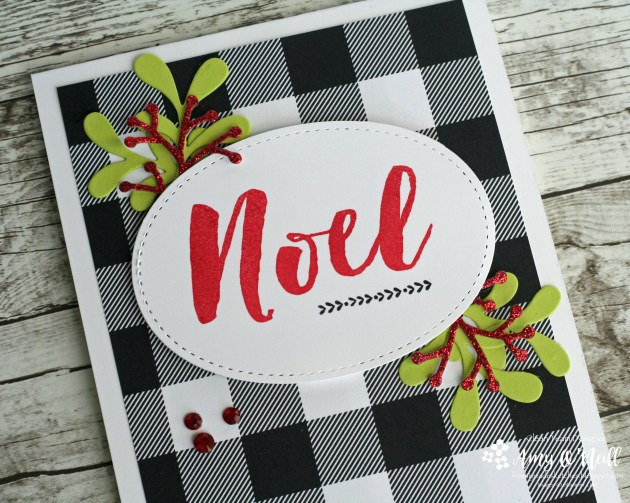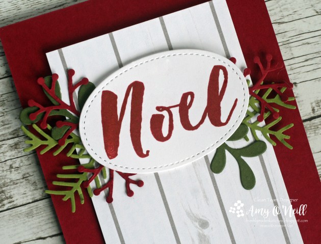 The large Noel sentiment is one of my favorites. I love the font and the bold look. And I love the coordinating greenery that goes with this stamp set.