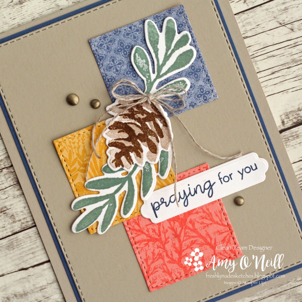This sketch had me stumped for quite a while. I ended up using the Christmas Season stamp set. I overlapped all of the stamped images so much that it’s kinda hard to see the sketch.