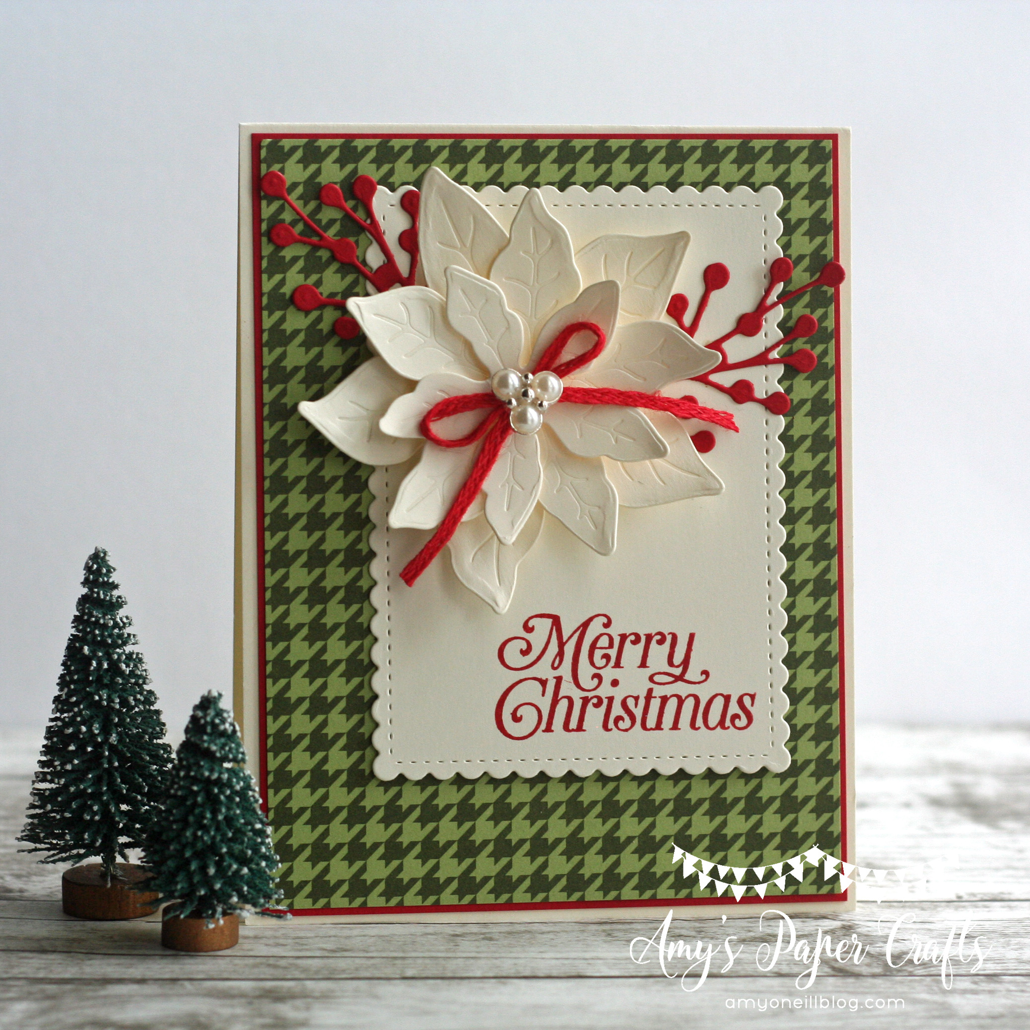 This sketch is perfectly timed as many of us are in the midst of making tags for Christmas presents ( which are all still unwrapped in my house). I decided to make a tag using the pretty poinsettia dies from the Poinsettia Place suite.