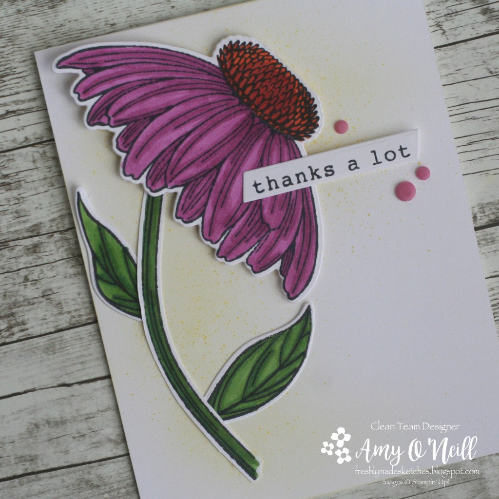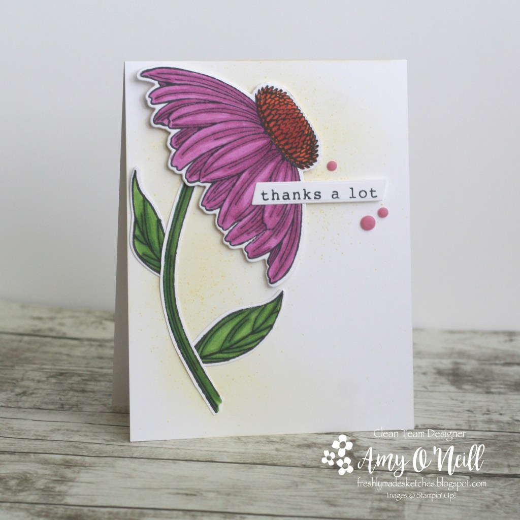 Coneflower Celebrations was one of the first new stamp sets to go in my cart when the new catalog went live. There are some fabulous dies that go with this set, but I chose to color the image with Petunia Pop Stampin’ Blends instead of using the layered dies. I look forward to trying that option next time.