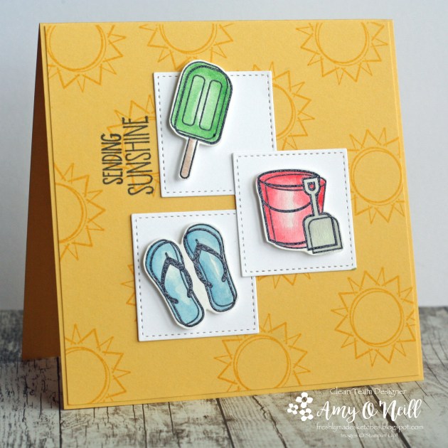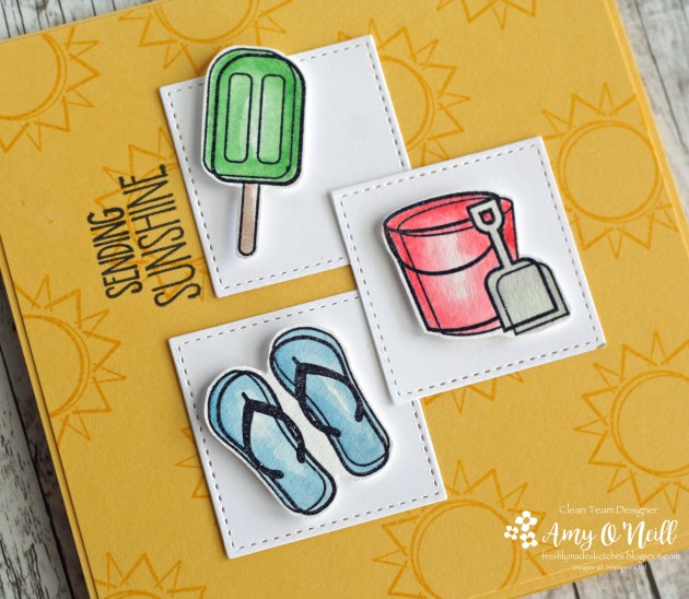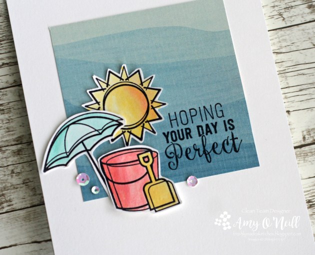 I reached for a retiring stamp set, Day at the Beach, when I saw this one. I also used a retiring sentiment set, Suite Sentiments and some retiring dsp, By the Shore.