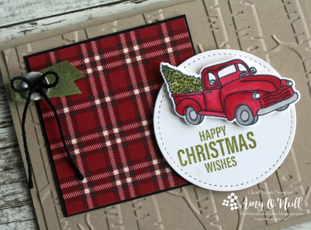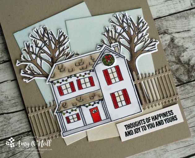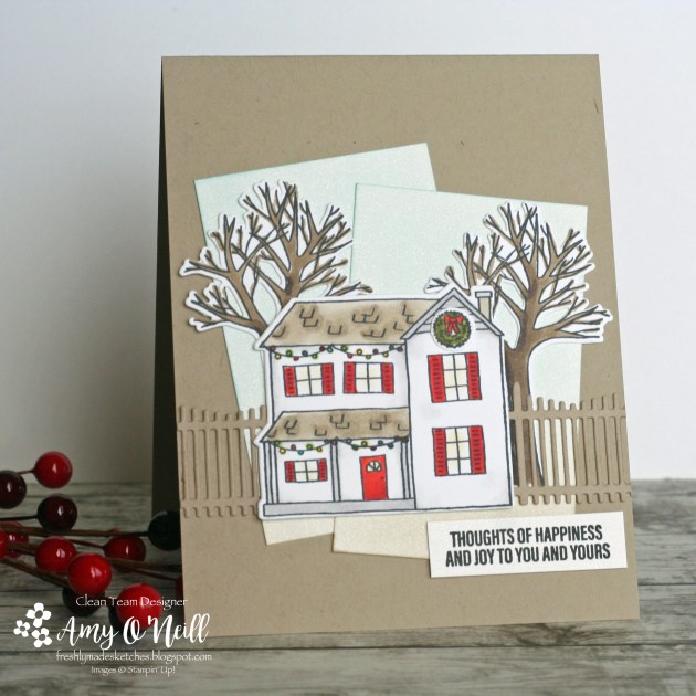 Since I still hadn’t made a card with the cute farmhouse in the Farmhouse Christmas set, I knew I wanted to make it work with the sketch somehow. Hopefully you can use your imagination and see that the house represents the oval in the sketch.