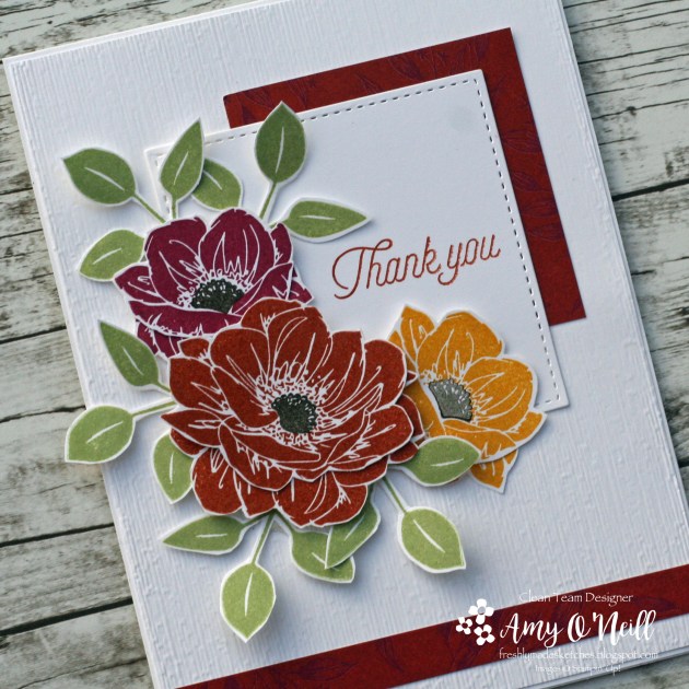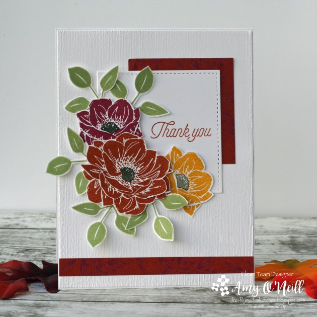 The new catalog is out and there are so many fabulous stamps, dies and accessories in it! But I don’t have any of them yet, so I am using a set, Floral Essence, that is carrying over and is still available. It is a pretty floral set.