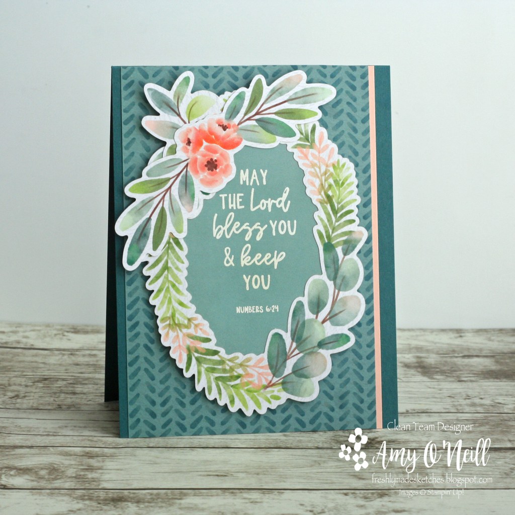 I used another piece of the dsp in the center of the wreath, and embossed a sentiment from the Courage & Faith stamp set on it. And that was it! An easy card!