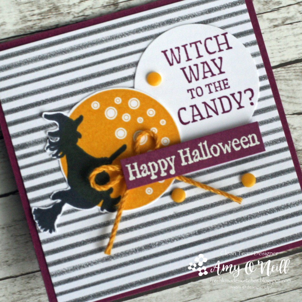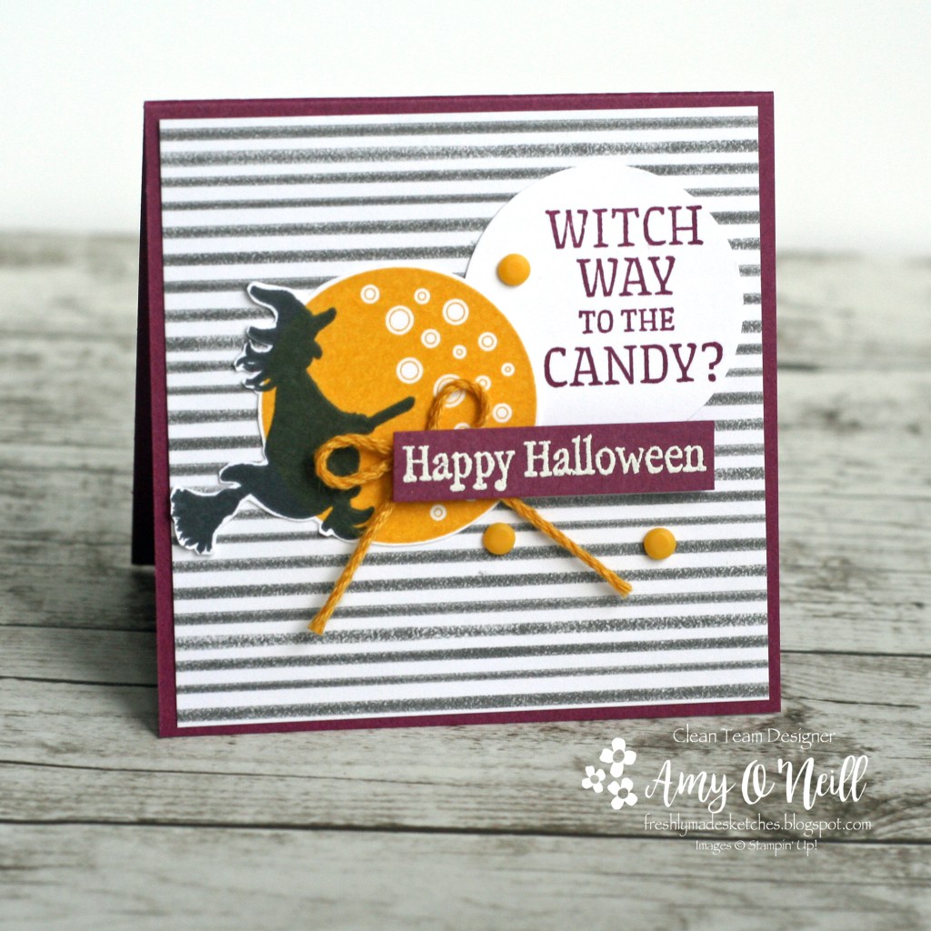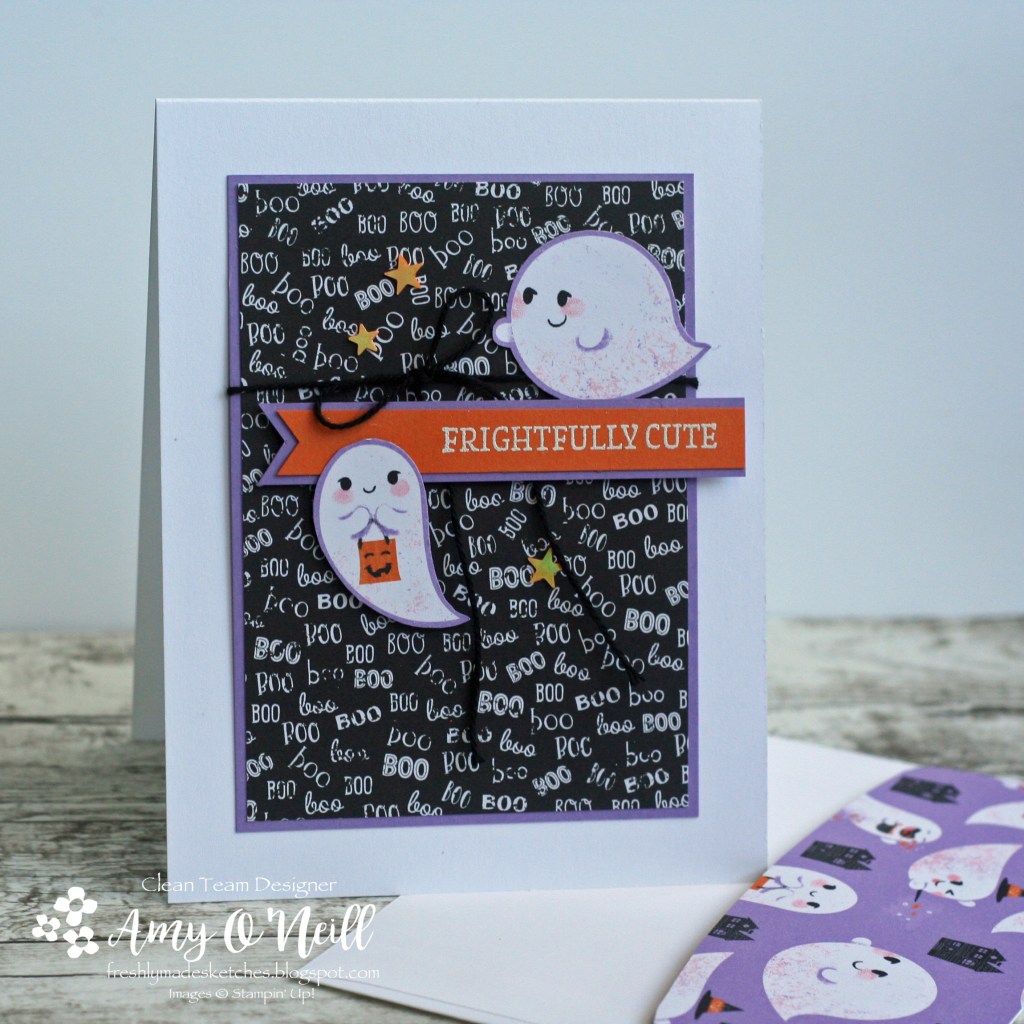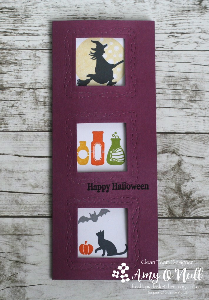 I needed one more Halloween card, and thought the little images in the Frightfully Cute stamp set would be perfect for the three little squares. I decided to make a tri-fold card and have the images peek out from cut-out windows.