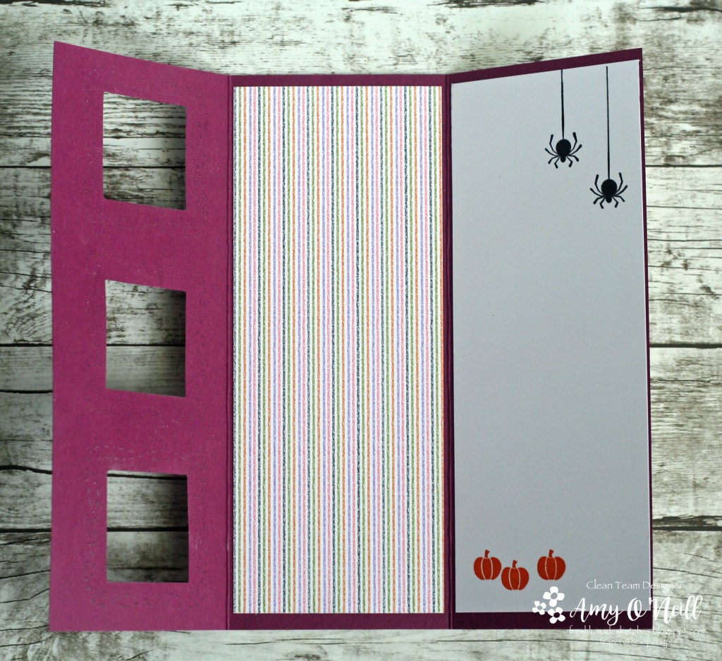 Here’s what the card looks like when it is fully open. I added a piece of Cute Halloween dsp to the center panel.