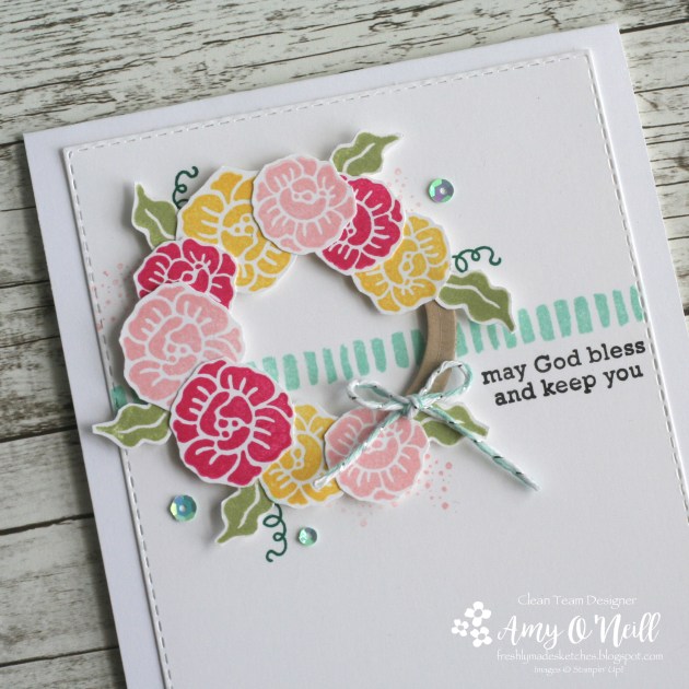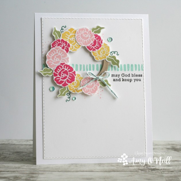 When I first saw the sketch, I immediately knew I wanted to make a wreath with Spring flowers. And since I hadn’t used the Heart to Heart stamp set in a while, I thought I would go with that set.