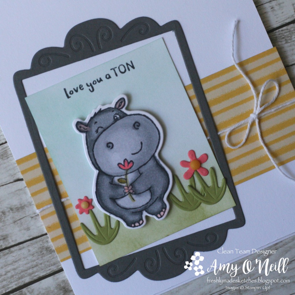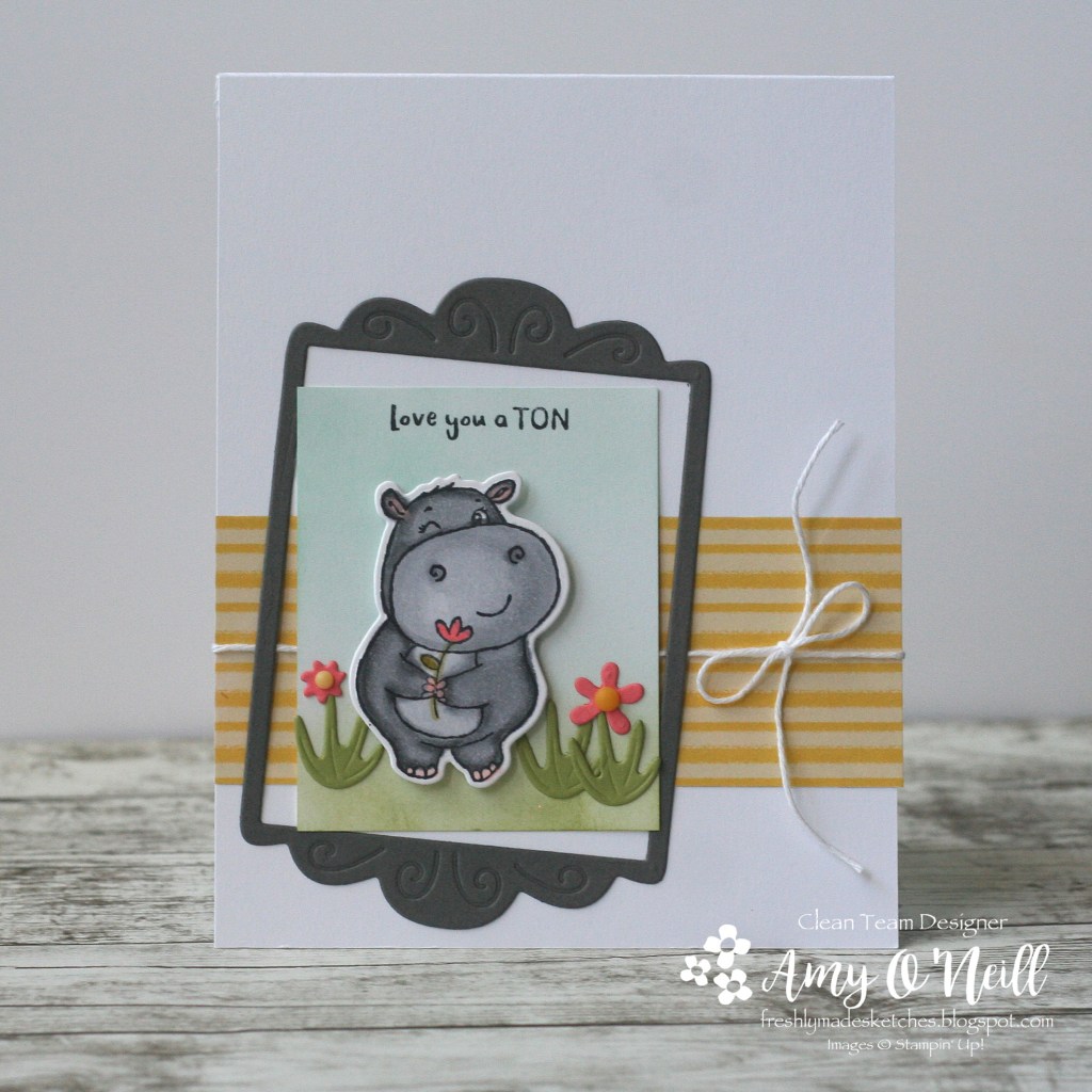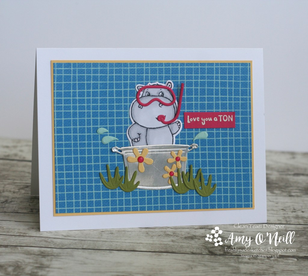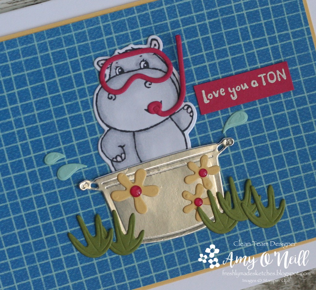 The cute hippo set and coordinating dies in the Sale-a-Bration offering are so fun! I colored one of the images with my alcohol markers and then cut out some fun accessories with the coordinating dies.