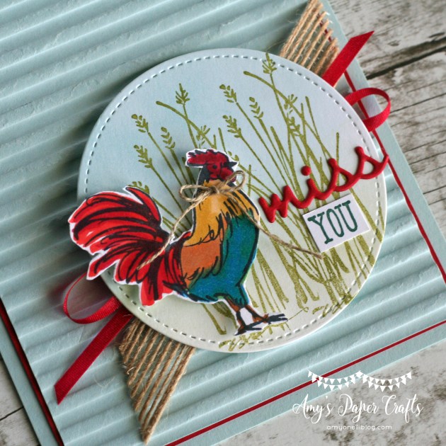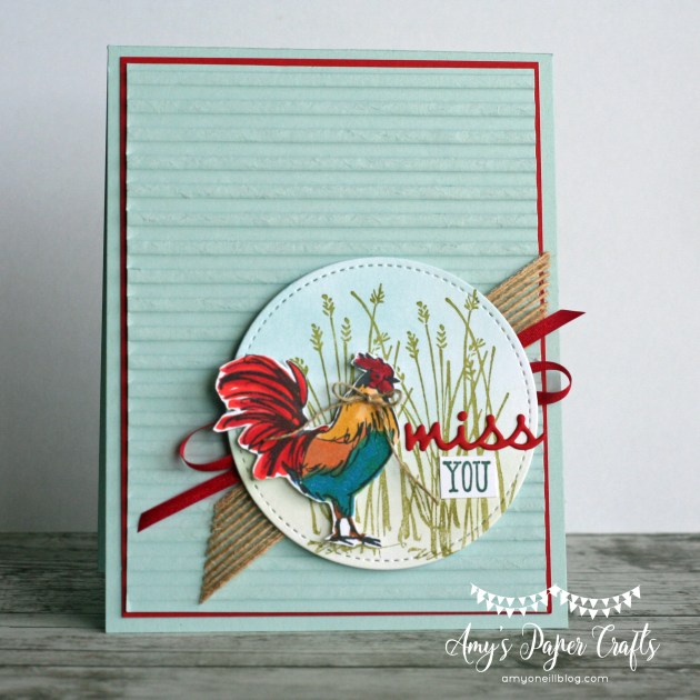 The rooster was stamped and colored with markers, and cut out by hand. The sentiment comes from the Well Said bundle. The embossed background was made with the Corrugated embossing folder.