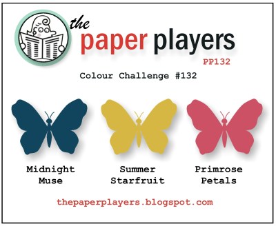 Ann has a color challenge for us this week at the Paper Players, and it features three of the newest In Colors. I’ll confess that I kinda struggled with this color combo a bit. I couldn’t decide which direction to take. I thought the first two would be good for a more masculine card, but then what to do with the pink? So in the end, I kinda compromised.