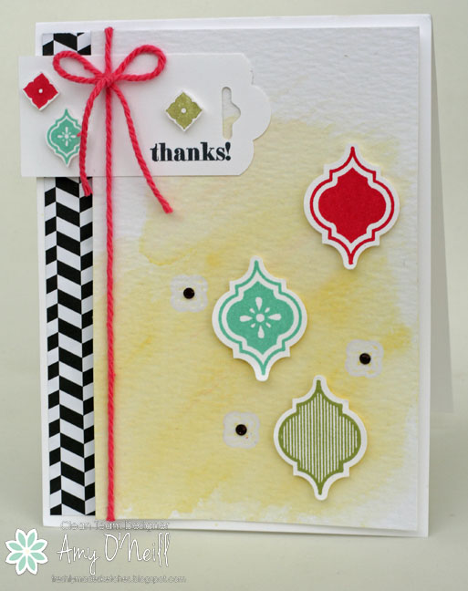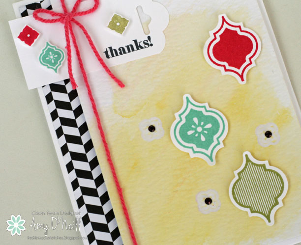 The sentiment is from another retiring set, Lots of Thanks. I added little rhinestones, which I colored with a black Sharpie, for embellishment.