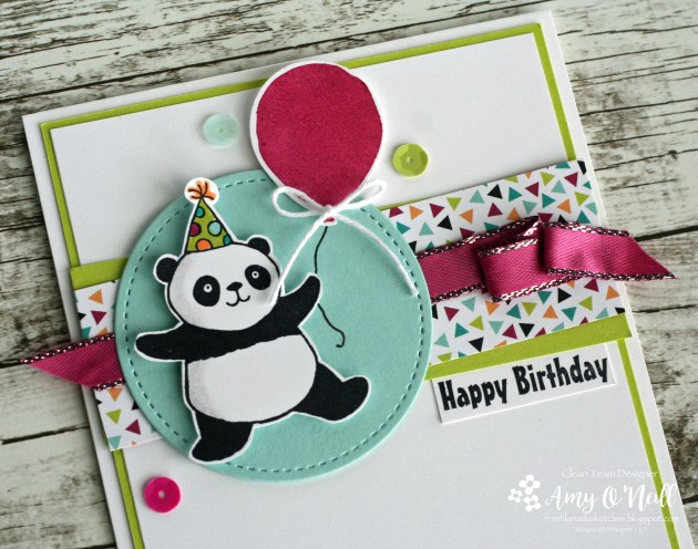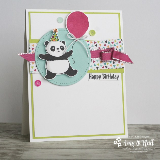 I knew I wanted to make a card using the Party Panda set as this is the last week of Sale-a-Bration and this is one of the sets offered. I love the sweet images in this set, and it was one of the first Sale-a-Bration items I had to have. And now that it’s the last week of the offering, I figured that I should actually use it…for…the…first…time… Argh! As I said, all you have to do is blink your eyes… Time flies!