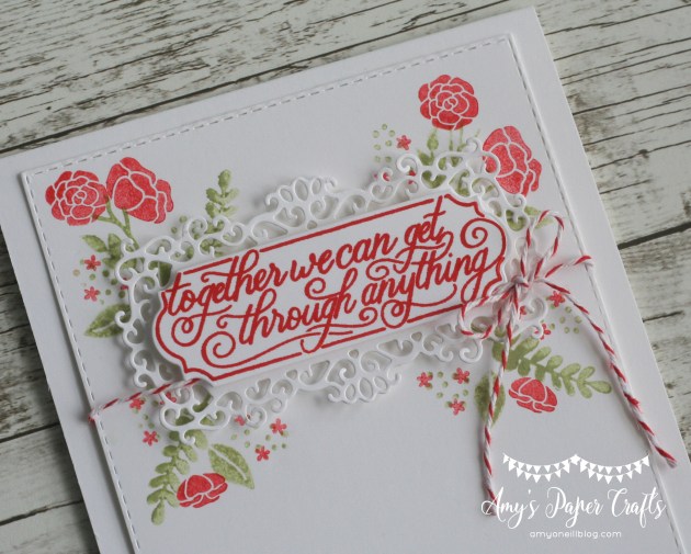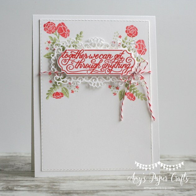 I was so excited to see that the Ornate Frames Dies were carried over from the Holiday catalog. And I was just as excited to see that there is a new stamp set that coordinates with these dies, Perfectly Framed, which has some fabulous sentiments. One of the sentiments in particular stood out to me as I was contemplating what I wanted to stamp today. It seemed to be appropriate for these times we are experiencing.