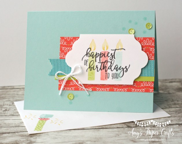 I needed to make a birthday card for my Dad, and I always seem to struggle with masculine cards. So I decided to pull out the Picture Perfect Birthday set. Birthday candles and confetti are always perfect for guys and girls, right?