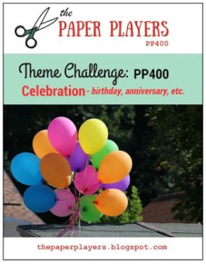 It is their 400th challenge! That definitely deserves a celebration! And they are having a big one for the next couple of weeks! Lots of prizes and inspiration at their blog — go check it out. The Paper Players is one of the first challenge sites I ever participated in, and I have used their weekly challenges as starting points for many of my cards over the years.
