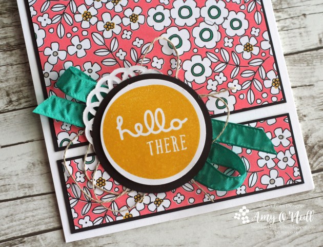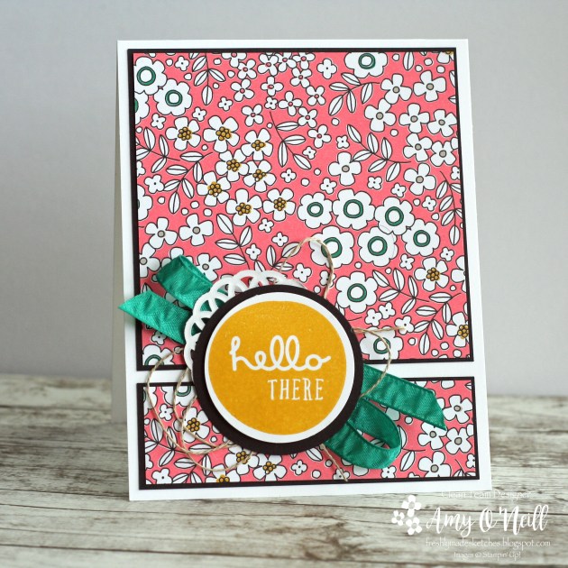 I needed to make a quick card, as I haven’t done much stamping with all three kids at home until Sunday. I decided to let some dsp be the star of the show, so I pulled out some of my favorite dsp from the Pick a Pattern dsp.