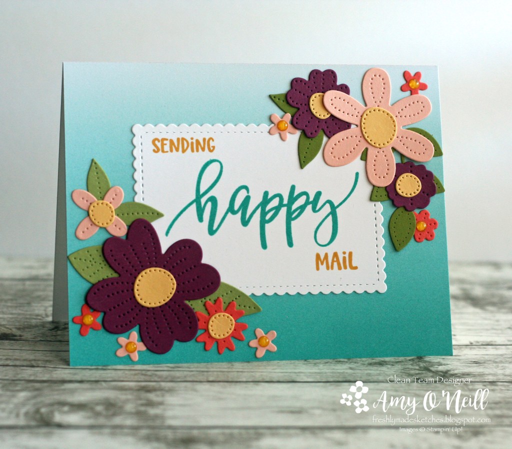 I used the Pretty Perennials set and coordinating dies to make this card. The dsp is from the Fine Art Floral collection. I stamped the envelope too, which is a quick and easy way to add a special touch.