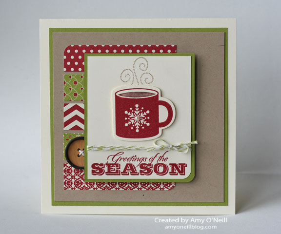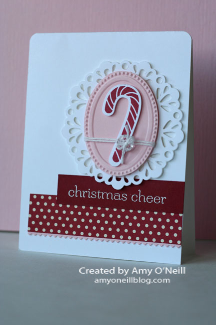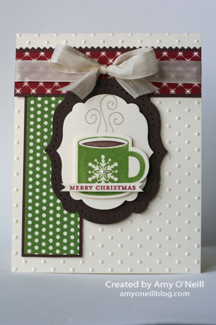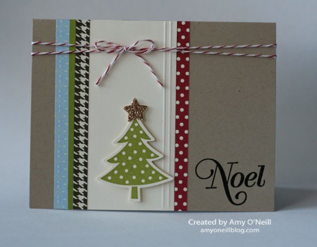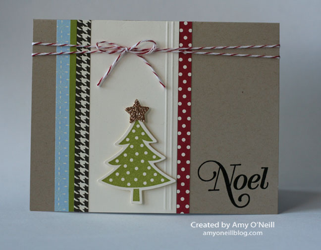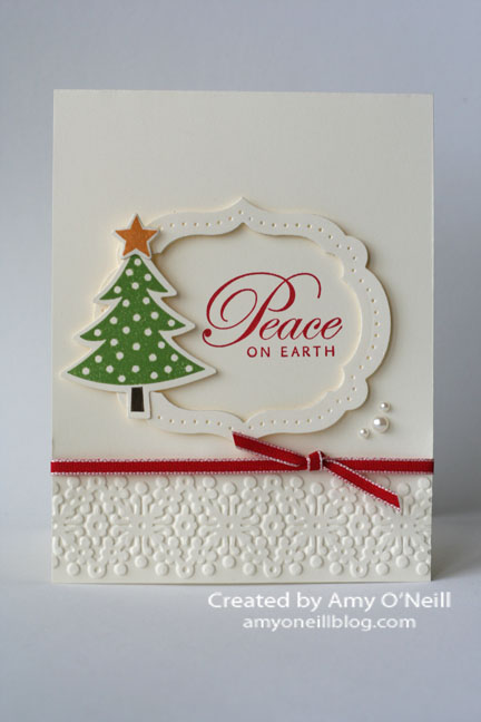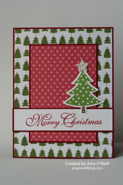 Here’s an easy Christmas card that wouldn’t be hard to mass produce or mail. And it has some of my favorite things — scallops, polka dots, and my favorite little tree. I copied the layout for this card from one in the annual catalog on page 53.