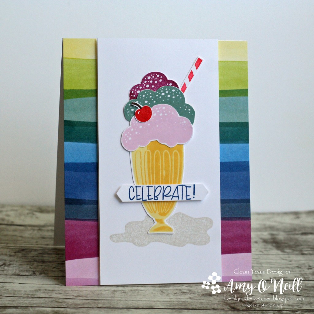 I did use a little creative license by moving the sentiment from what is shown in the sketch. But it didn’t look right on top of the ice cream.