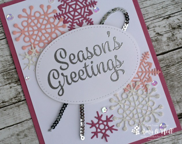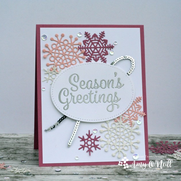 I’m continuing with my Christmas card journey, though I have stepped away from the Seasonal Lantern stamp set this week. Those circles made me think of snowflakes, and then it was easy from there.