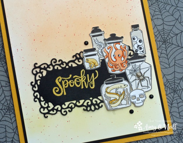 I’ve been collecting Halloween and Fall themed items to put into care packages for my two college kiddos. Of course, most of the items in the boxes are food items (if you can call candy “food”). I used the Monster Bash suite of products to decorate the boxes and some of the contents.