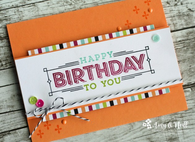 Going along with the retiring products theme, I’ve also used Peekaboo Peach as the card base. This color will be retiring soon; however, there will be a new In-Color called Grapefruit Grove, which is a really pretty peachy color. Some other retiring products include the black Baker’s Twine (yep, I had to stock up on this! So sad to see it go!), the Tutti-Frutti Adhesive Backed Sequins, the Picture Perfect dsp, and the Enamel Shapes.