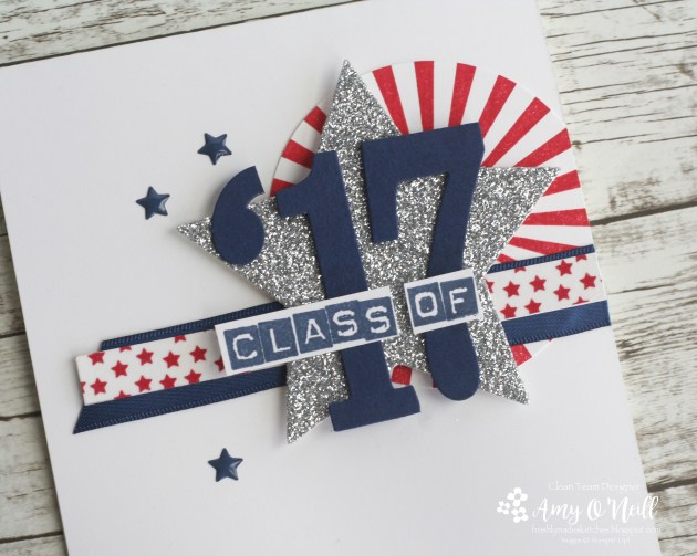 I really wish alphabet stamp sets and dies would include an apostrophe in their collections, but it is rare to find one. I made do by cutting off a part of the number 3 and using it for an apostrophe here. The “class of” is from the Labeler alphabet set.