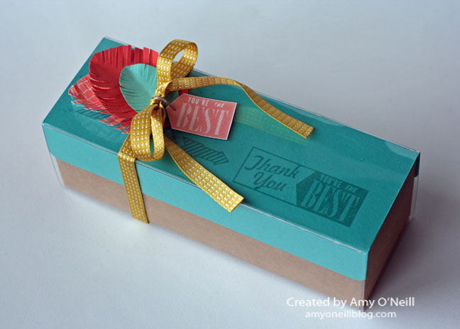This last project that I’m sharing today is one of the Tag a Bag Gift Boxes. It is decorated with the Hello, Lovely stamp set and some handmade feathers. Very fun!