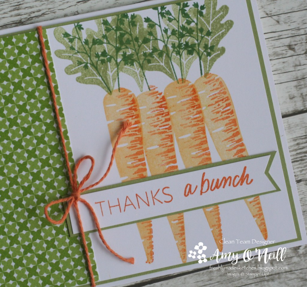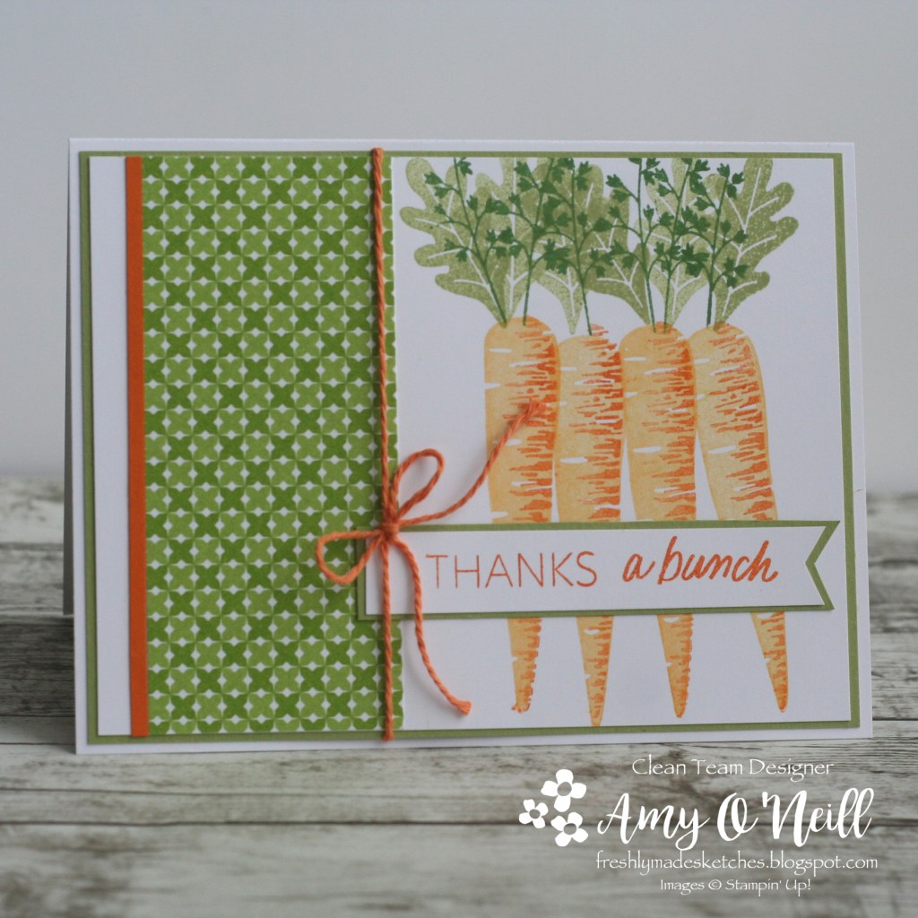 I paired the carrots, which were made with two-step stamping, with some of the Dandy Designs dsp. I love this paper and it is another free Sale-a-Bration offering.