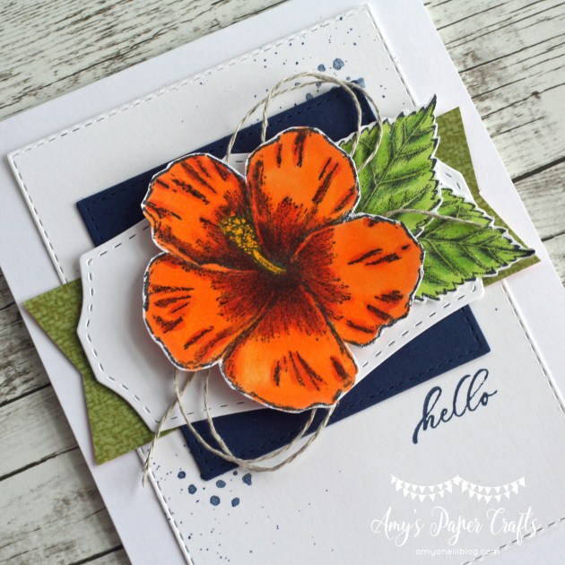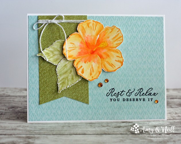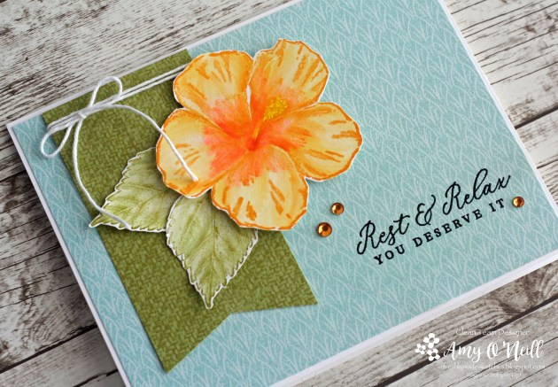 Some strips of coordinating Tropical Oasis dsp were used on the side of the card base and the focal panel was adhered with dimensionals.