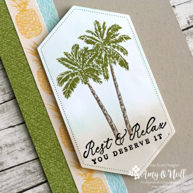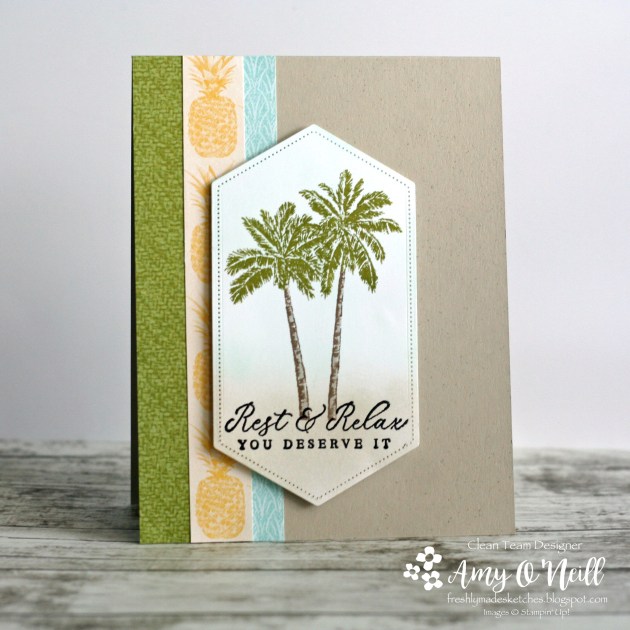 I thought I would try to get ahead on the Father’s Day cards since it will be here before we know it. Male cards are so hard for me. I always struggle with finding a stamp set on my shelf that is good for these cards. The Timeless Tropical set has a great palm tree stamp that I thought would be perfect, especially when paired with one of the sentiments in the set.
