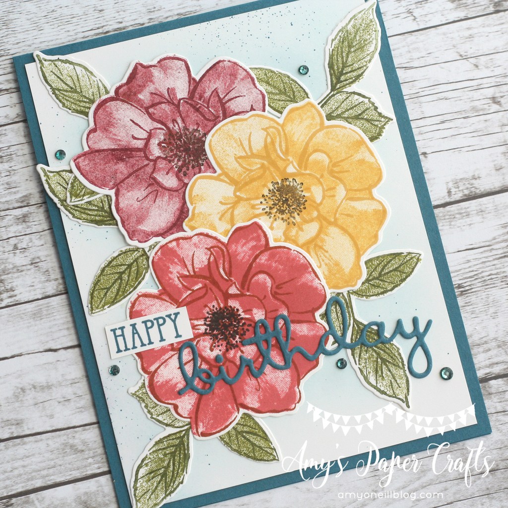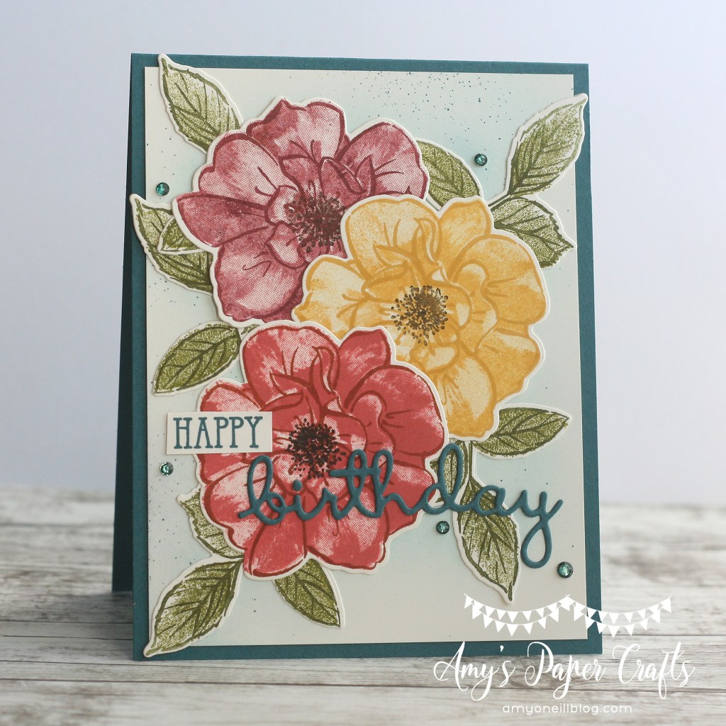 I wanted to create a pretty card for a friend’s birthday, and I thought of Fall flowers. Since I hadn’t used the To a Wild Rose stamp set in a while and I love these flowers, I pulled it off my shelf.