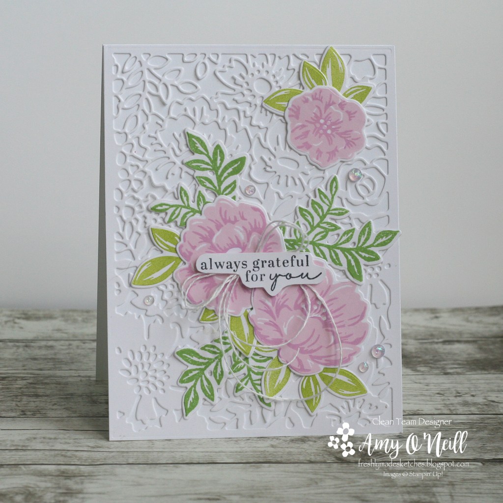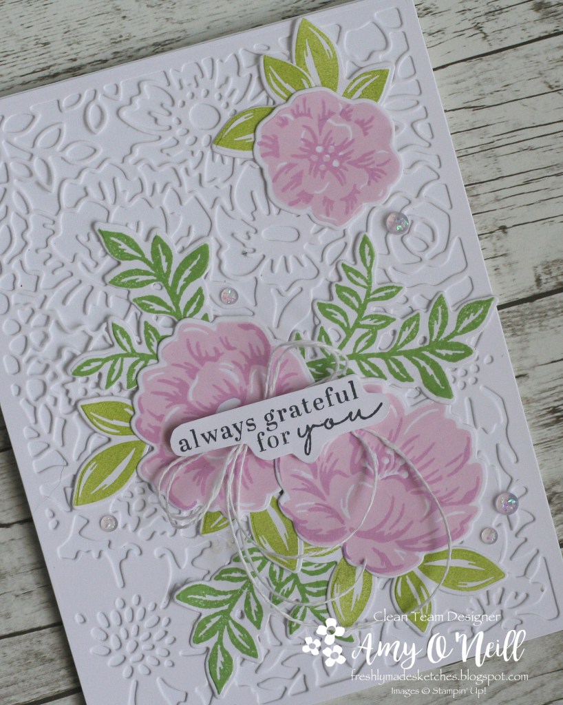 The Two-Tone Flora set has a gorgeous coordinating set of dies, that includes this detailed background die. I stamped the flowers and leaves and cut them out with some of the other dies in the set.