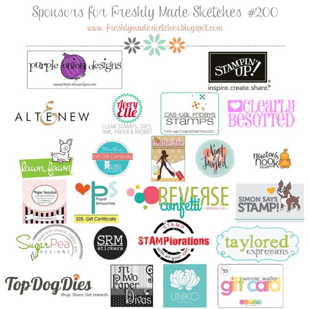 Are you ready for this?!? I know I am, and the rest of the design team at Freshly Made Sketches is too. We are celebrating our 200th sketch this week, and we’ve invited some amazing sponsors to help us celebrate. They have all generously donated prizes for this milestone.